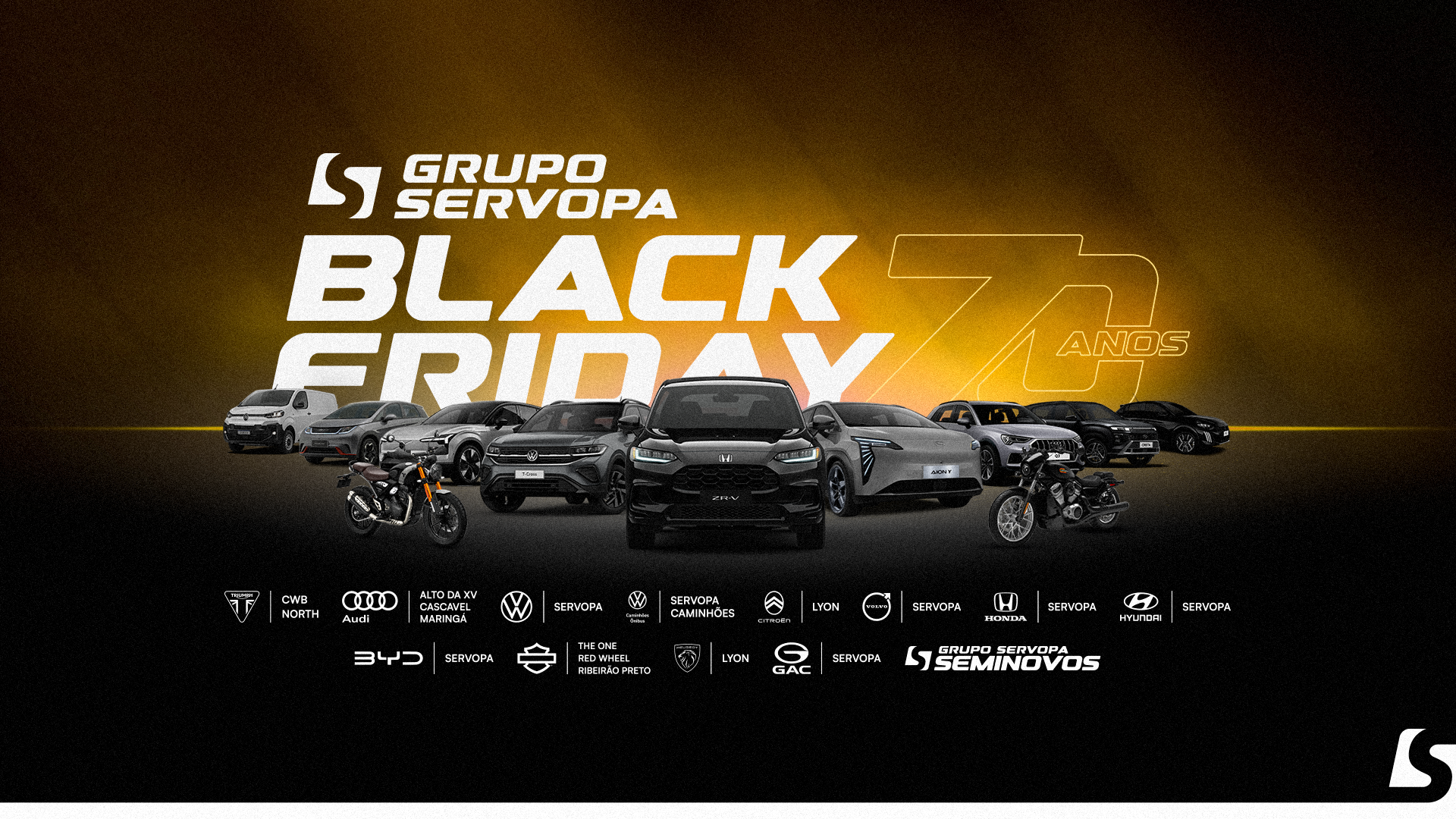 A presente campanha é promovida pelas concessionárias participantes do Grupo Servopa, com o objetivo de premiar clientes que participarem das ações da Black Friday 2025, nos dias 22 e 23 de novembro de 2025.